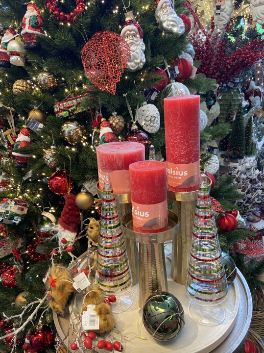 - Kerstversiering: zoals kerstballen, kerststerren, kerststukjes, kerstkransen, guirlandes en verschillende kerstfiguren